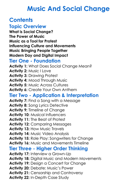Music And Social Change Worksheet Activity Booklet