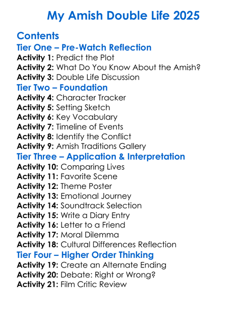 My Amish Double Life 2025 Worksheet Activity Booklet