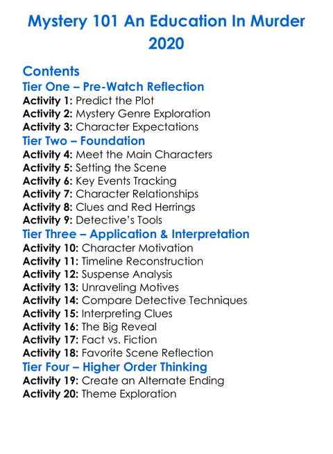 Mystery 101 An Education In Murder 2020 Worksheet Activity Booklet
