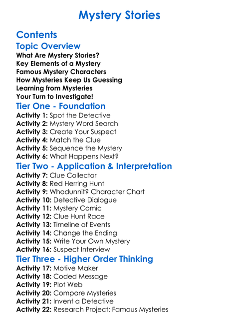 Mystery Stories Worksheet Activity Booklet