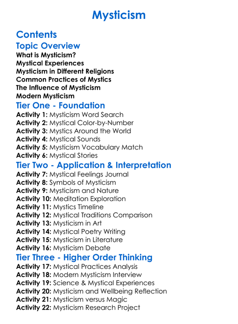 Mysticism Worksheet Activity Booklet