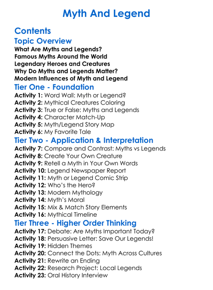 Myth And Legend Worksheet Activity Booklet