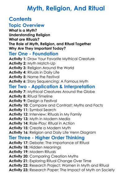 Myth Religion And Ritual Worksheet Activity Booklet