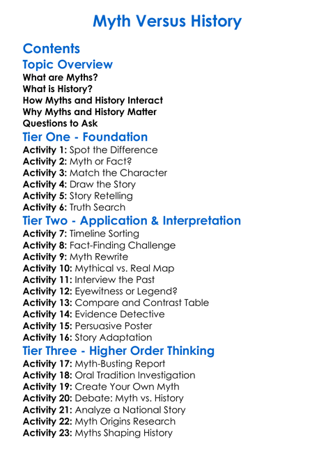 Myth Versus History Worksheet Activity Booklet