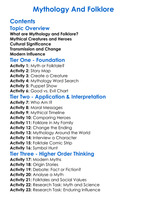 Mythology And Folklore Worksheet Activity Booklet