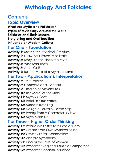 Mythology And Folktales Worksheet Activity Booklet