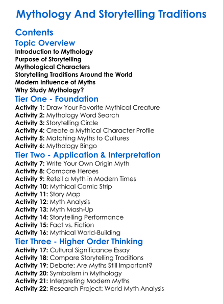 Mythology And Storytelling Traditions Worksheet Activity Booklet