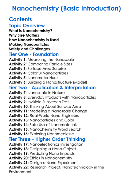 Nanochemistry Basic Introduction Worksheet Activity Booklet