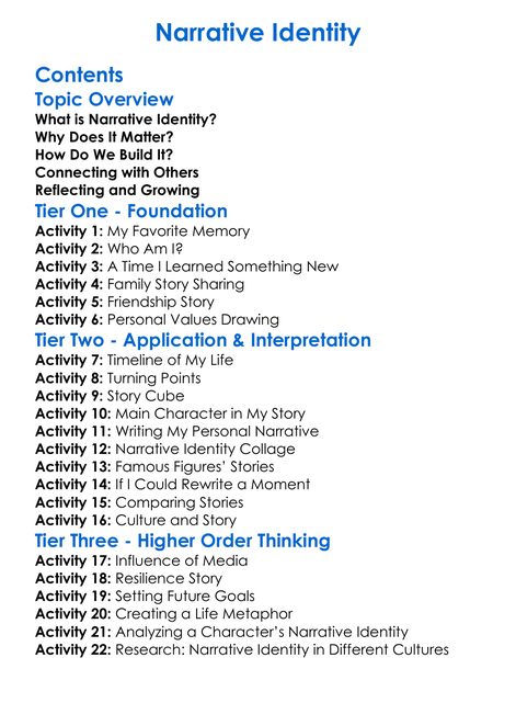 Narrative Identity Worksheet Activity Booklet