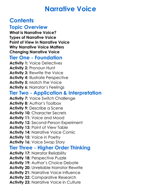 Narrative Voice Worksheet Activity Booklet