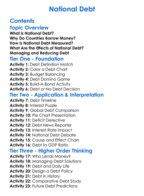 National Debt Worksheet Activity Booklet