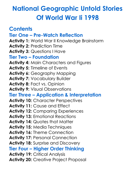 National Geographic Untold Stories Of World War Ii 1998 Worksheet Activity Booklet