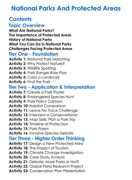 National Parks And Protected Areas Worksheet Activity Booklet