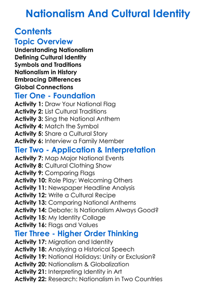 Nationalism And Cultural Identity Worksheet Activity Booklet