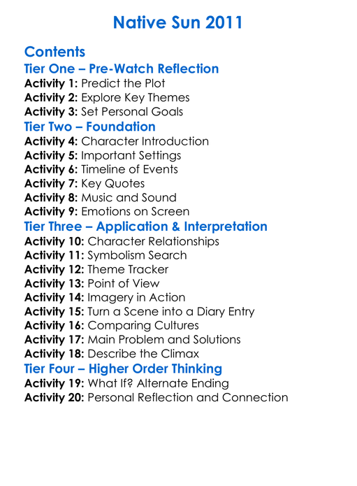 Native Sun 2011 Worksheet Activity Booklet