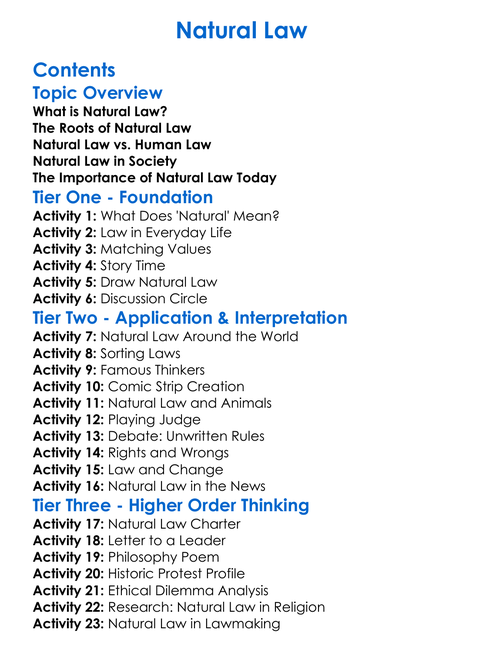 Natural Law Worksheet Activity Booklet