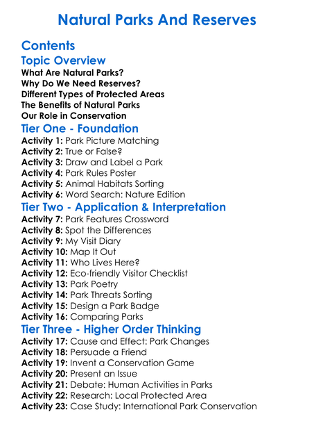 Natural Parks And Reserves Worksheet Activity Booklet