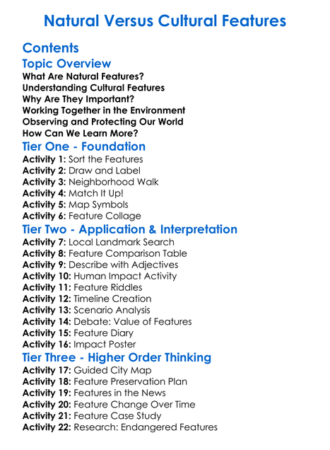 Natural Versus Cultural Features Worksheet Activity Booklet