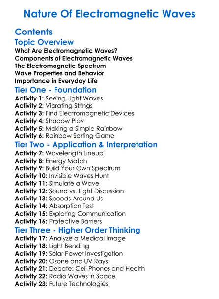 Nature Of Electromagnetic Waves Worksheet Activity Booklet