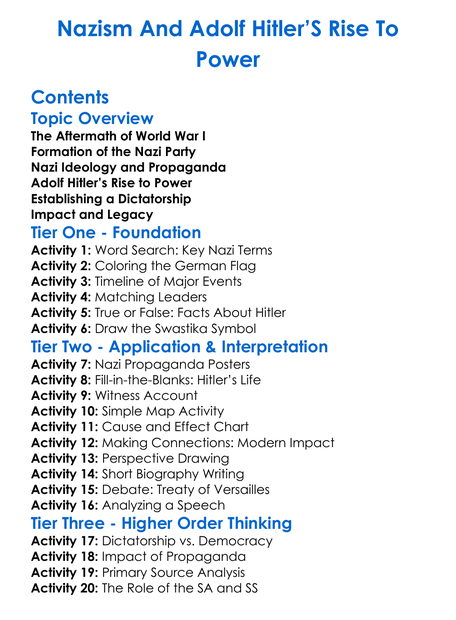 Nazism And Adolf Hitlers Rise To Power Worksheet Activity Booklet