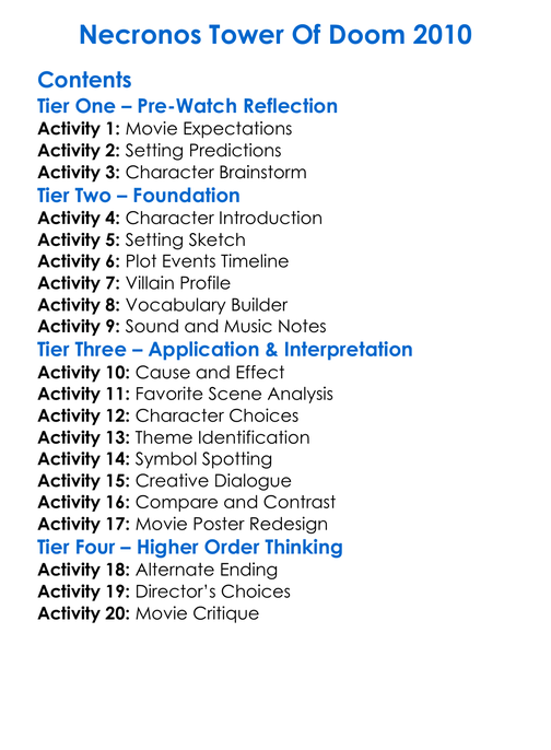 Necronos Tower Of Doom 2010 Worksheet Activity Booklet