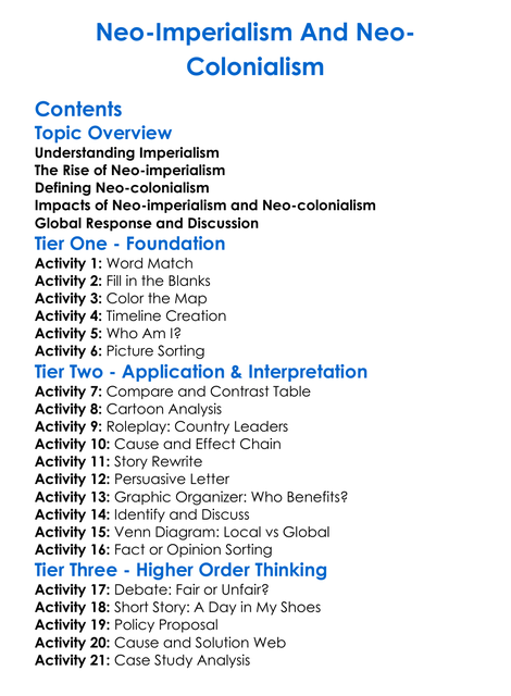 Neo-Imperialism And Neo-Colonialism Worksheet Activity Booklet