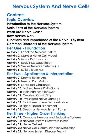 Nervous System And Nerve Cells Worksheet Activity Booklet