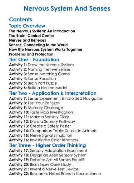 Nervous System And Senses Worksheet Activity Booklet
