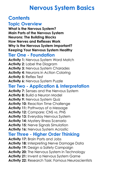 Nervous System Basics Worksheet Activity Booklet