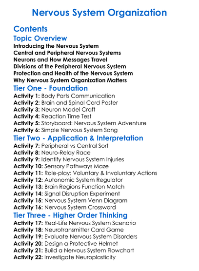Nervous System Organization Worksheet Activity Booklet