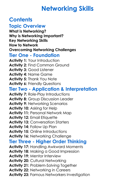 Networking Skills Worksheet Activity Booklet