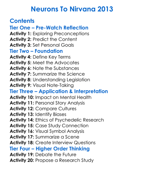 Neurons To Nirvana 2013 Worksheet Activity Booklet