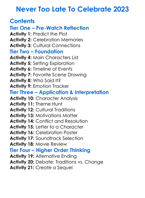 Never Too Late To Celebrate 2023 Worksheet Activity Booklet