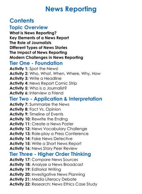 News Reporting Worksheet Activity Booklet