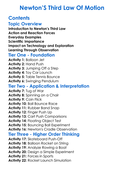 Newtons Third Law Of Motion Worksheet Activity Booklet