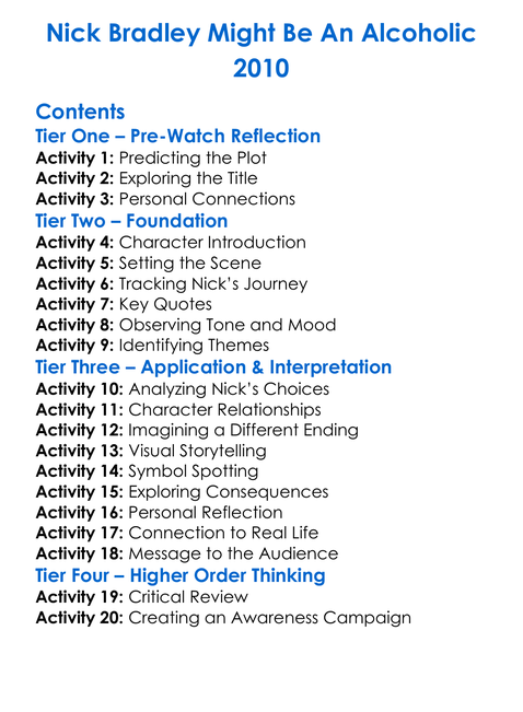 Nick Bradley Might Be An Alcoholic 2010 Worksheet Activity Booklet
