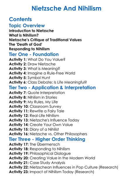 Nietzsche And Nihilism Worksheet Activity Booklet
