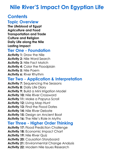 Nile Rivers Impact On Egyptian Life Worksheet Activity Booklet