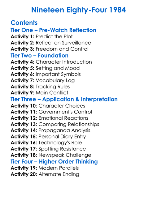Nineteen Eighty-Four 1984 Worksheet Activity Booklet