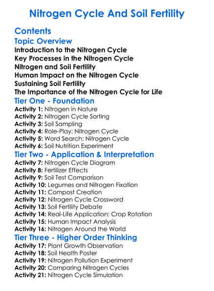 Nitrogen Cycle And Soil Fertility Worksheet Activity Booklet