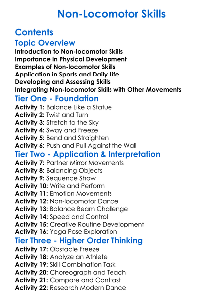 Non-Locomotor Skills Worksheet Activity Booklet