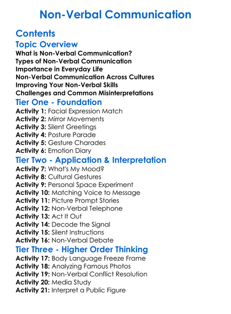 Non-Verbal Communication Worksheet Activity Booklet