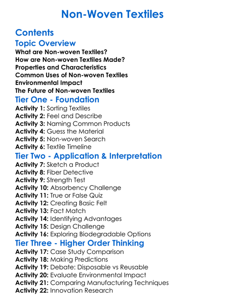 Non-Woven Textiles Worksheet Activity Booklet