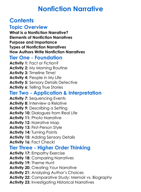 Nonfiction Narrative Worksheet Activity Booklet