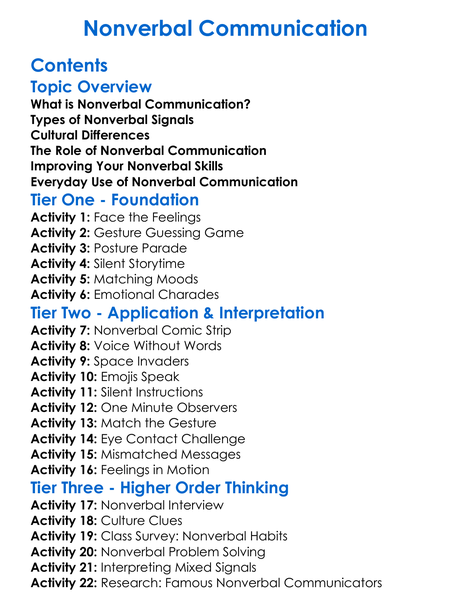 Nonverbal Communication Worksheet Activity Booklet