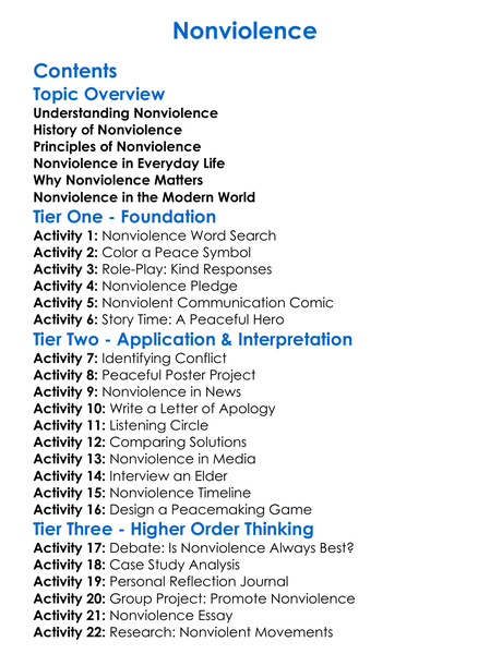 Nonviolence Worksheet Activity Booklet