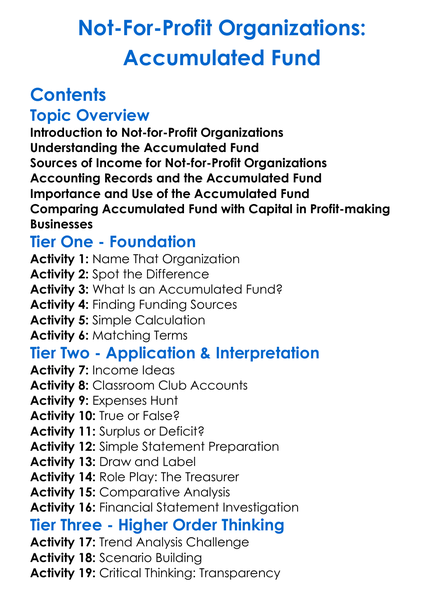Not-For-Profit Organizations Accumulated Fund Worksheet Activity Booklet