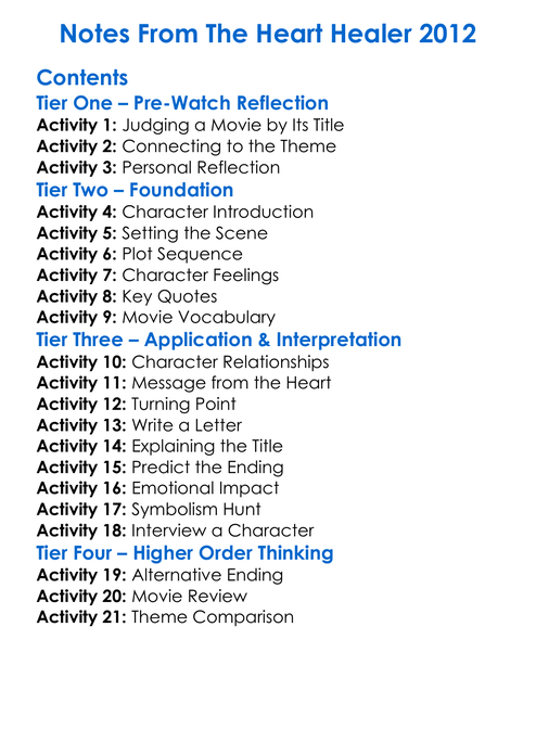 Notes From The Heart Healer 2012 Worksheet Activity Booklet