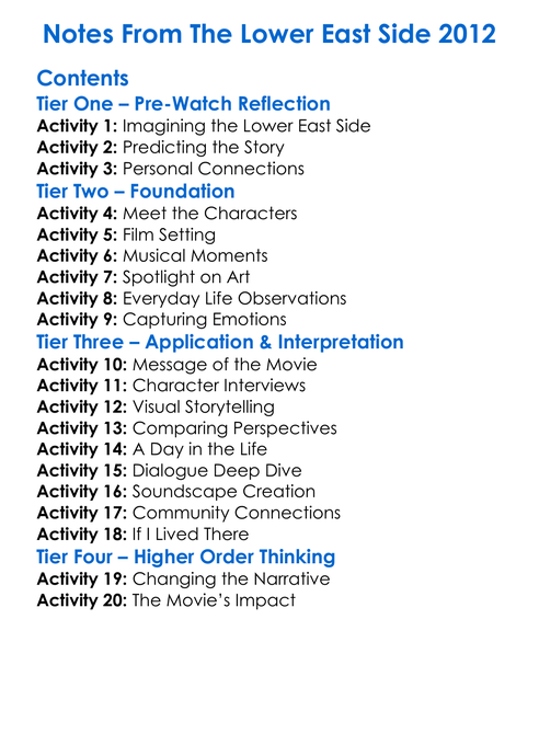 Notes From The Lower East Side 2012 Worksheet Activity Booklet