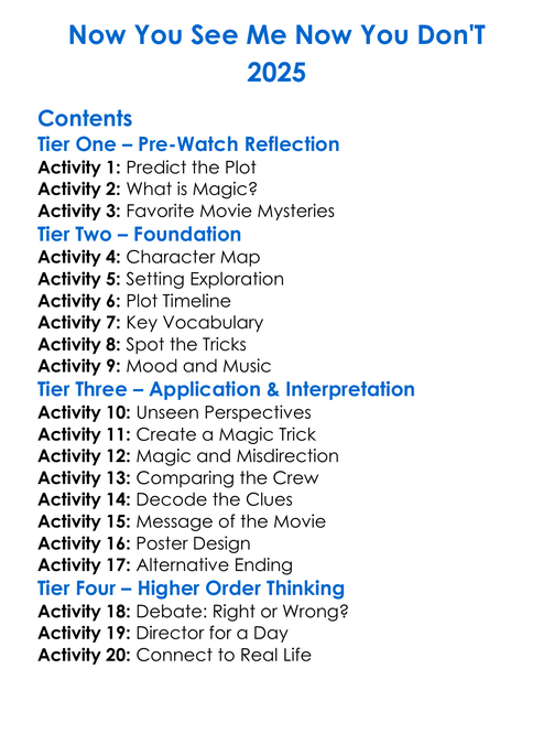 Now You See Me Now You Dont 2025 Worksheet Activity Booklet